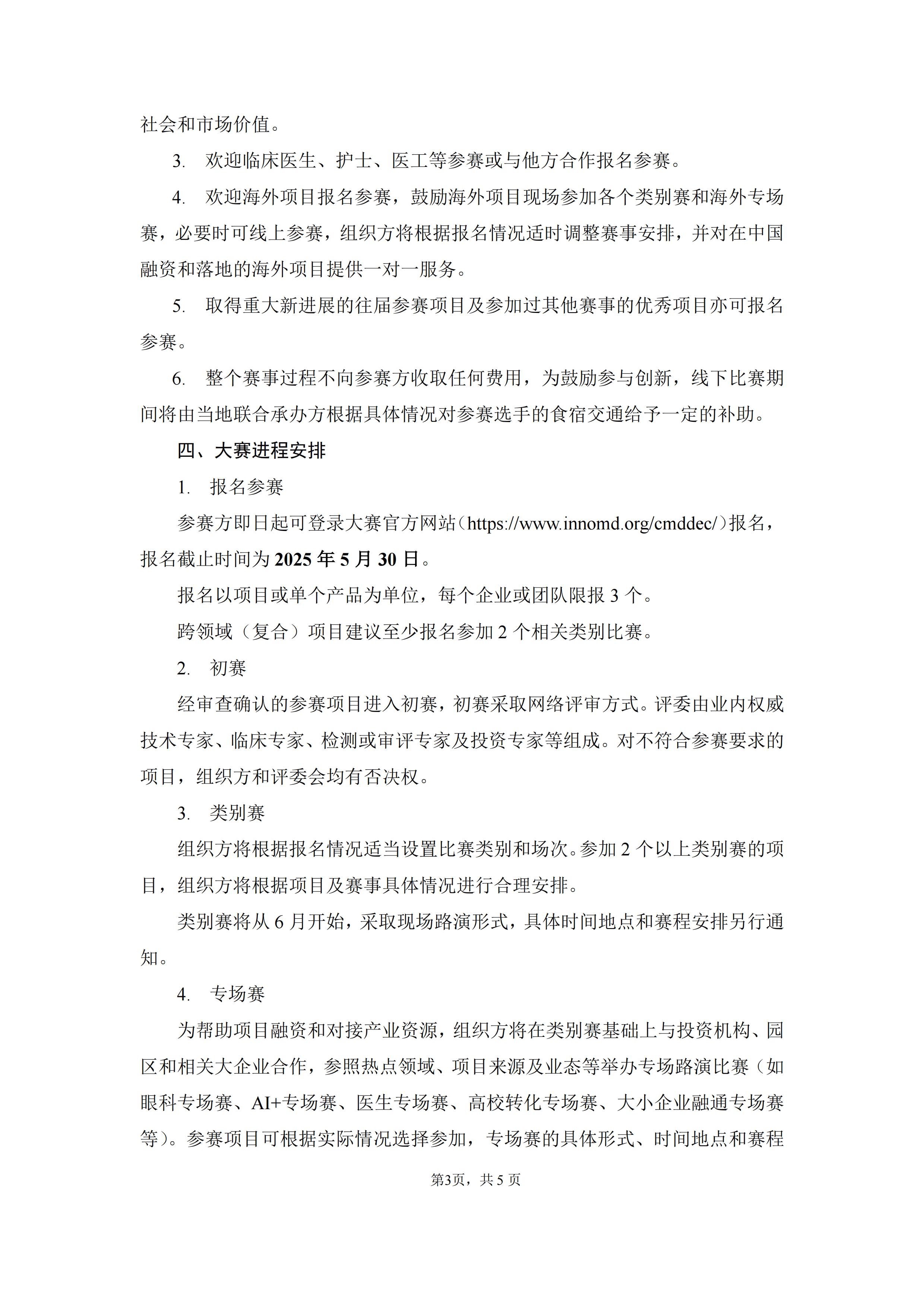 参赛方即日起可登录大赛官方网站(医疗器械创新网网://qoyyoh.com/cmddec/)报名,报名截止时间为2025年5月30日。